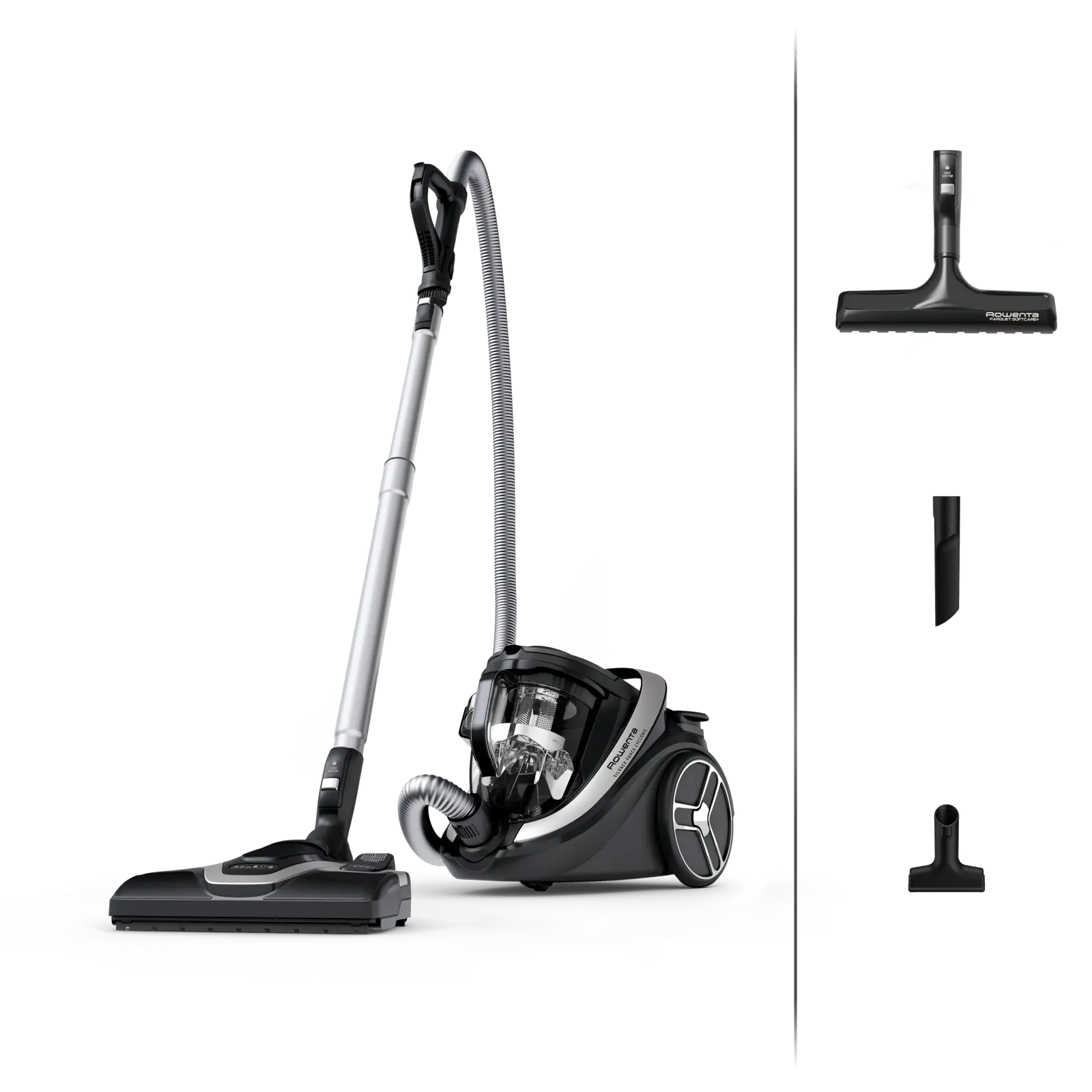 | Brosses incluses | Tête 2 positions + brosse parquet Softcare |