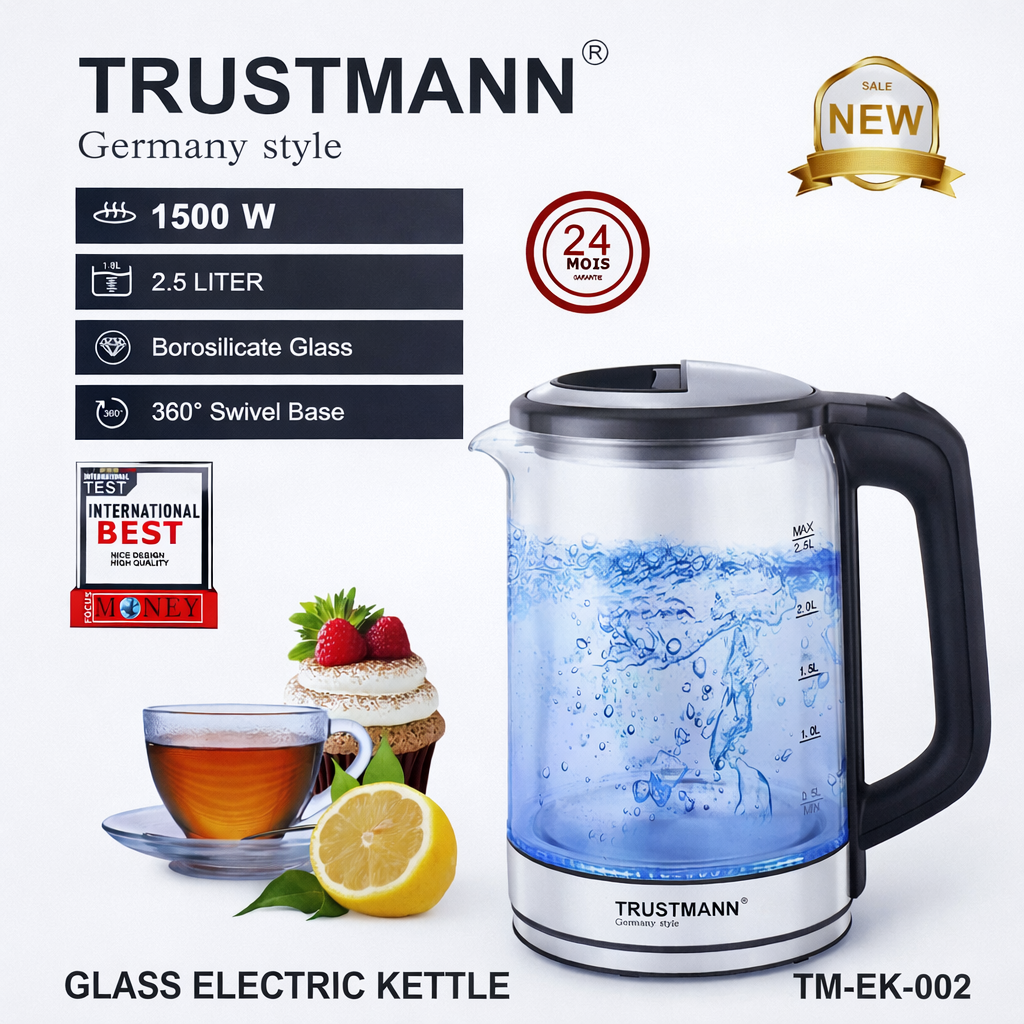 Bouilloire LED En Verre 2.5L 1500W Trustmann TM-EK-002 x13,990 د.ج