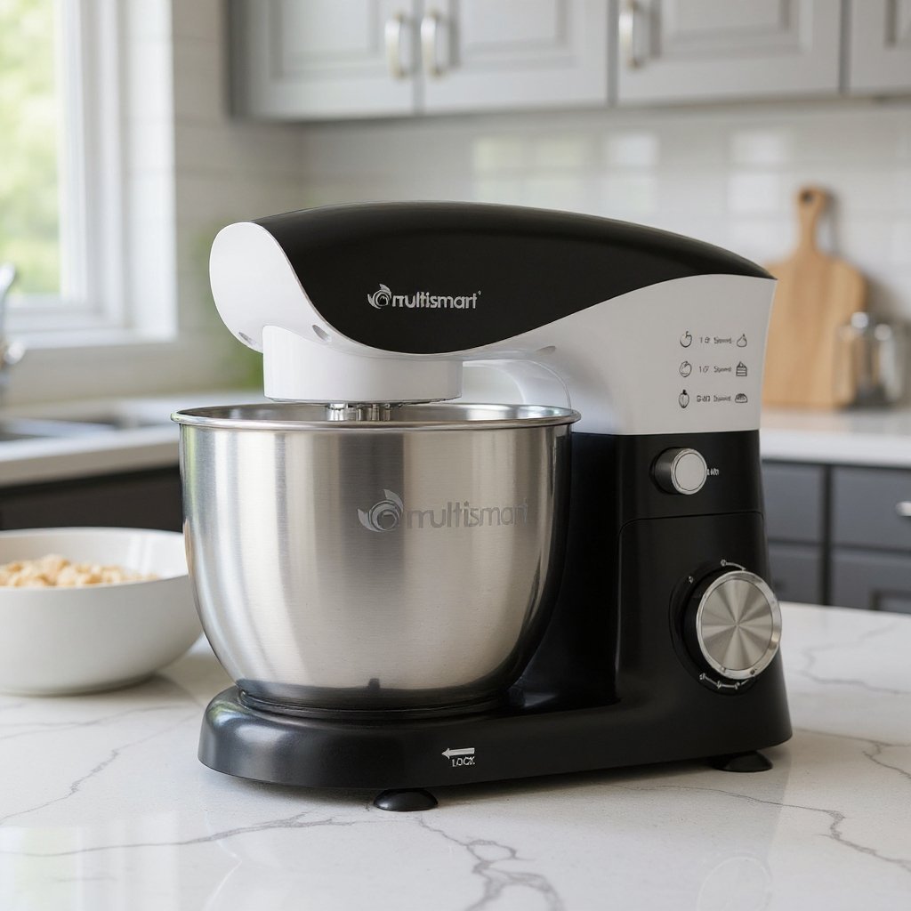 Pétrin 05L 1500W Bol en inox avec 03 Accessoires Multismart MS-SM2105 Noir/Blanc